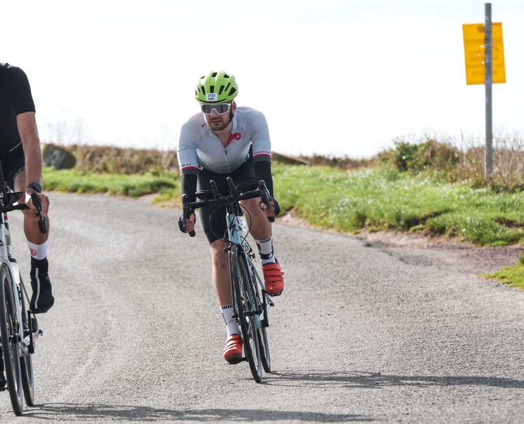 The course consists of a larger loop and then a smaller loop twice. The first portion is gentle, and a great way of banking some speed with little effort. It’s mostly flat to Angle with only a few rolling hills, and there are some fantastic views at Freshwater West on the way. At this point I was really enjoying it, although struggling to get any solid food in me. I’d stashed 6 sachets of High5 carb mix in my jersey and had to rely on these as my only source of carbs.