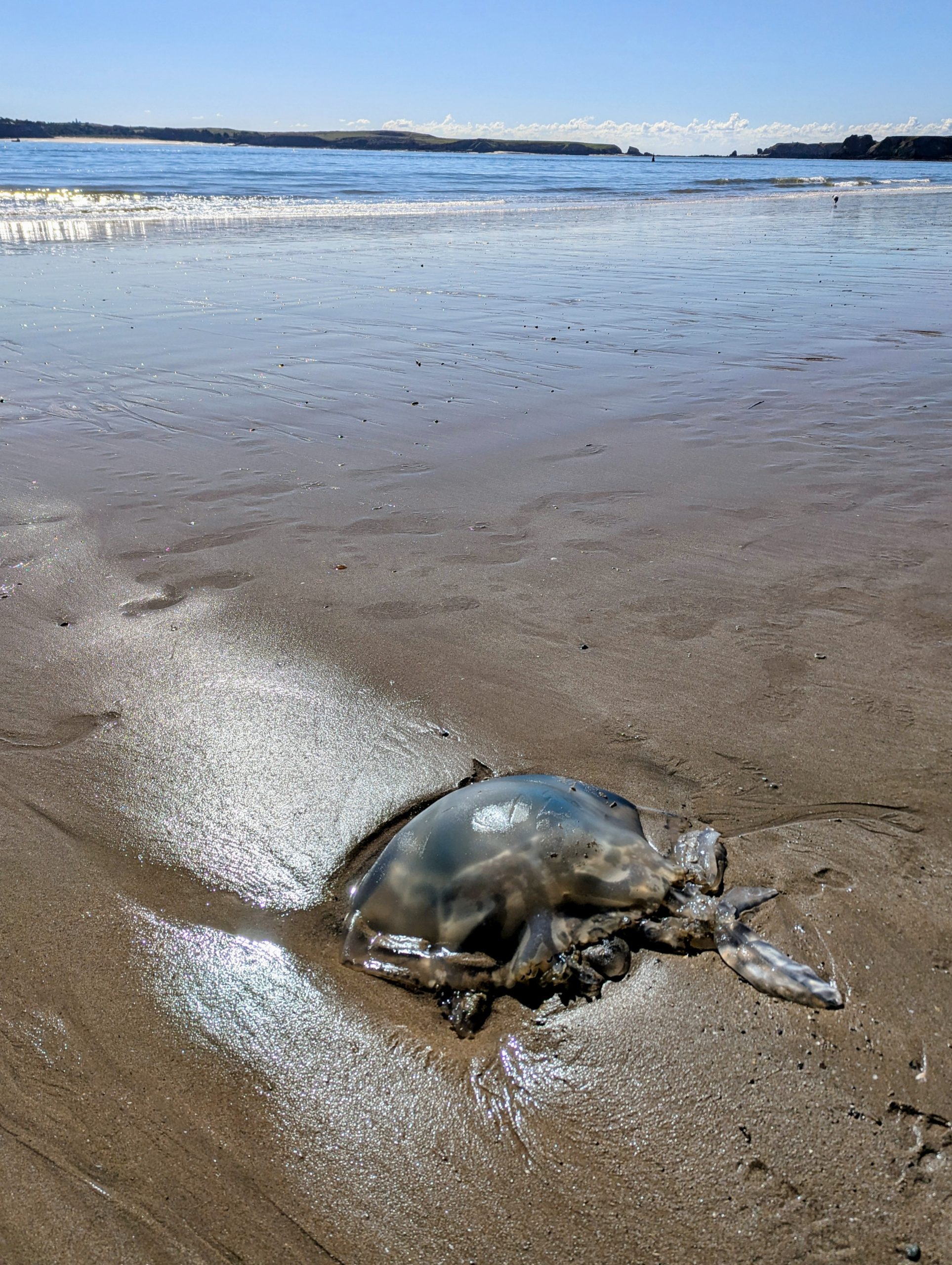 I’m not sure exactly what type of jellyfish they were (unfortunately/fortunately I didn’t see any of them in the water), but walking along the beach the next day the shoreline was littered with these big guys. I’ve still got scars on my feet from them.
